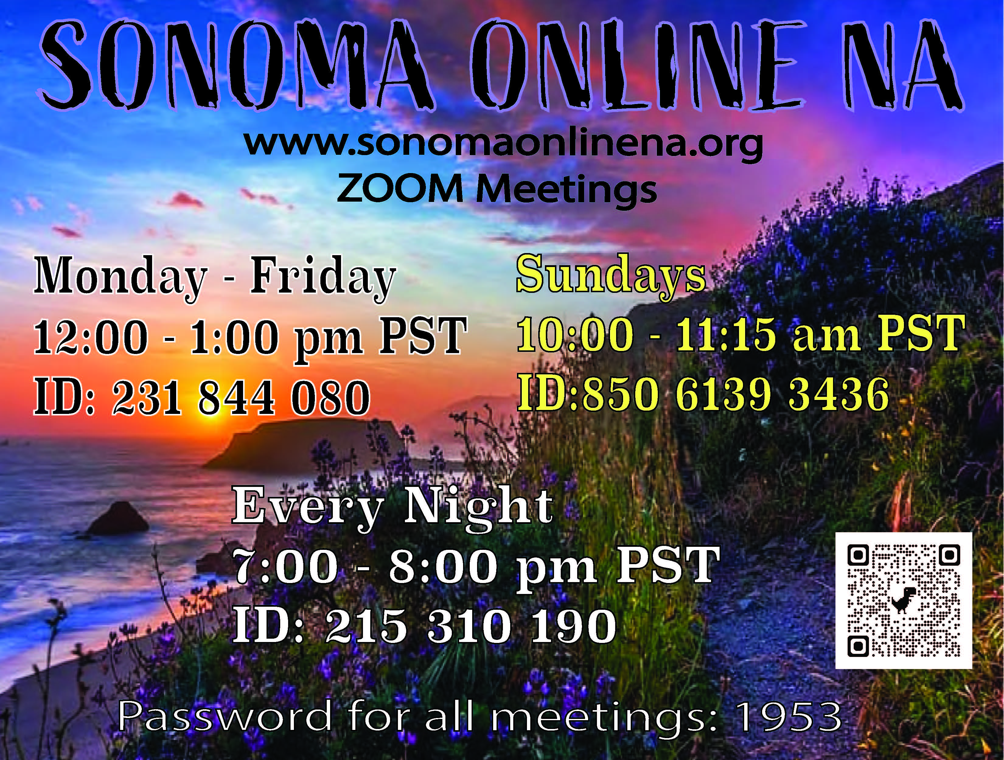 More information can be found on the Sonoma County Fellowship of Narcotics Anonymous Area webpage loacted at: SonomaCountyNA.org